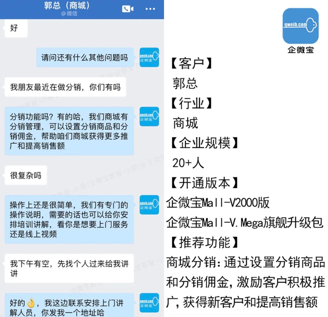 我是一直都在用企微宝,也是很久的合作伙伴了。他们的功能都还挺好用的,每次更新的内容都是站在我们这里的角度不断去优化。我也是看有个做商城的朋友在搞什么分销,说是分享商品给别人下单就能拿到钱,客户都很主动,做得还挺好的。我就来问问企微宝这边有没有类似的功能,没想到真的有。