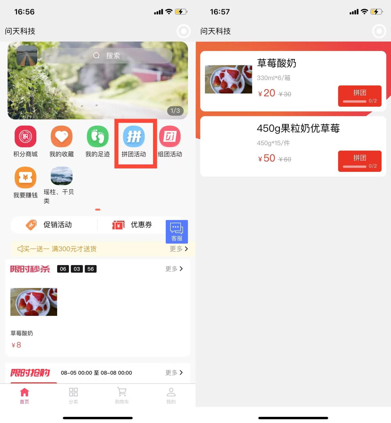 商家可以通过在拼团商城中设置不同的零售或批发拼团规则,以及拼团人数、拼团有效期等等,来吸引更多的消费者参与拼团,同时也能够限制每个消费者参与拼团的次数来避免恶意刷单等行为。对于商家来说,拼团还能帮助商家扩大用户群体和提高知名度,增强客户黏性。