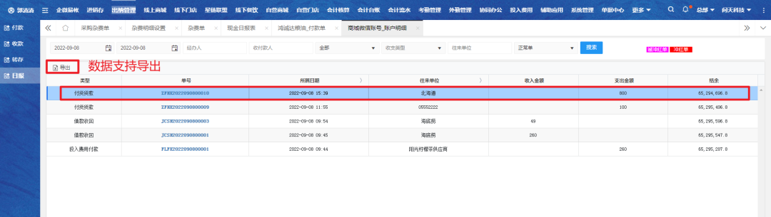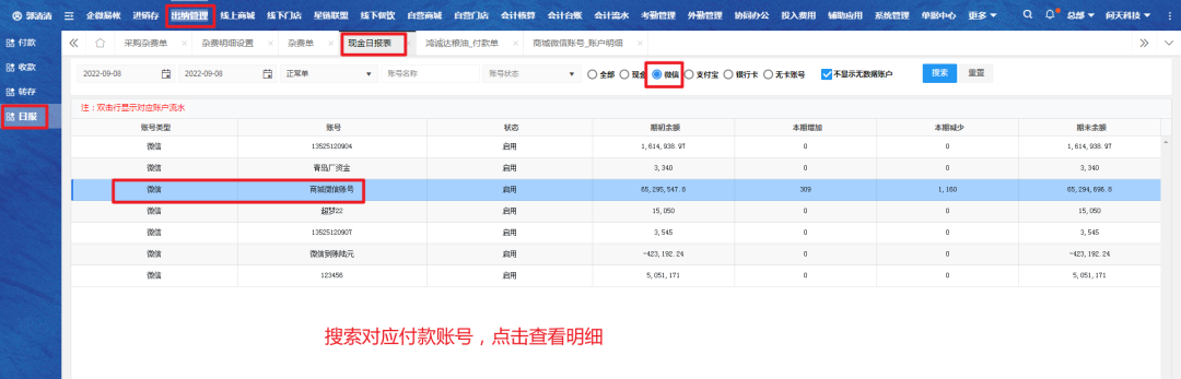 一、进入现金日报表页面,搜索对应付款账号,双击查看详情;