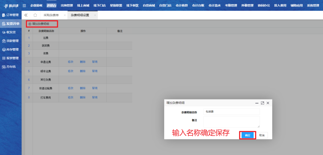 电脑端入口:【进销存】-【发票开单】-【采购杂费单】