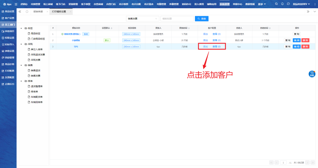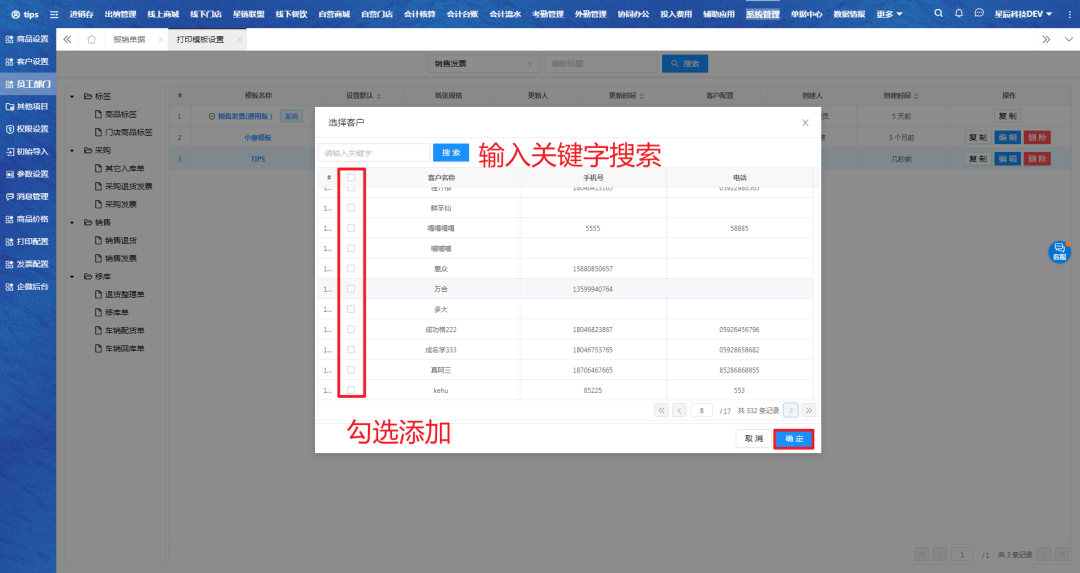 二、选择对应打印模板,点击添加客户。