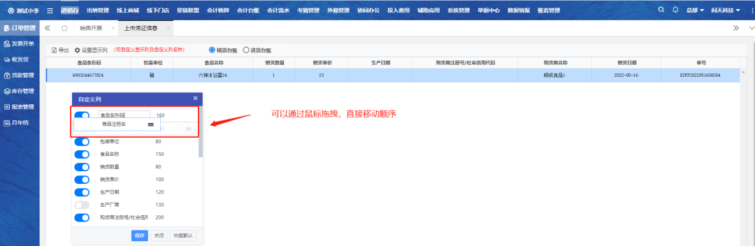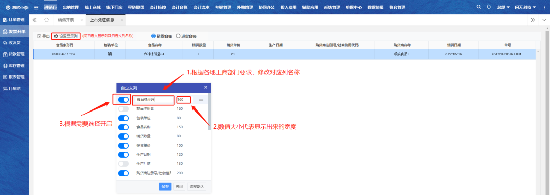 点击【设置显示列】按钮,可以对表格标题名称等进行自定义编辑