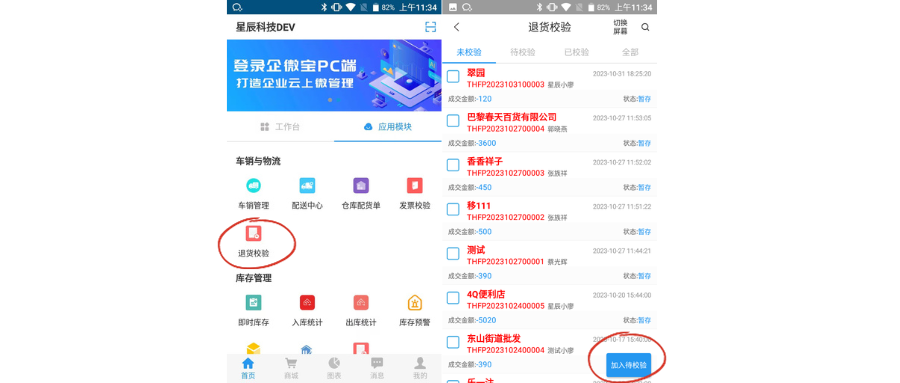 尤其是在回库校验环节,企微宝系统拥有智能化的商品识别功能,通过使用手持定制机对商品一键扫码,企微宝系统可以自动识别商品信息,包括商品名称、规格、数量等,大大提高了回库校验的效率。这意味着,业务员不需要花费大量时间手动输入商品信息,可以更加专注于物流业务从而提高工作效率。企微宝系统还具备智能化的数据分析功能,可以根据退货数据生成报表和统计数据,帮助企业经营决策。