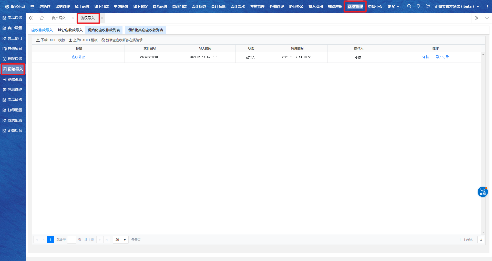电脑端入口:【系统管理】-【初始导入】-【债权导入】/【债务导入】
