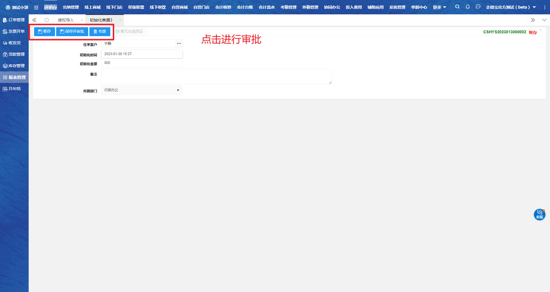 二、进入初始化应收账款列表,选择对应单据进行审核或作废操作;