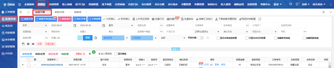 电脑端入口:【进销存】-【发票开单】-【销售开票】