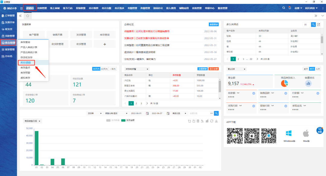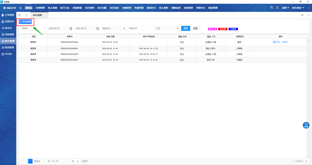 1.进入【进销存】—【库存管理】—【库存清算】模块
