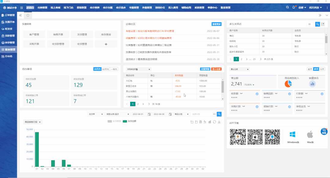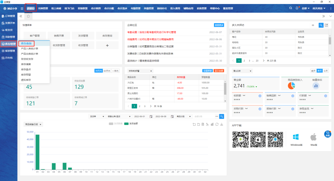 4.库存清算完成后,进入【进销存】-【库存管理】-【库存查询】模块