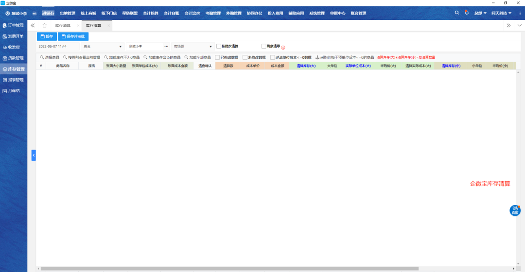 在实际运营场景中,会存在由于修改了换算比例、允许负库存存在等原因,导致系统库存跟实际库存不一致的情况,企业可以通过企微宝的【库存清算】功能,来进行库存数量的纠正。