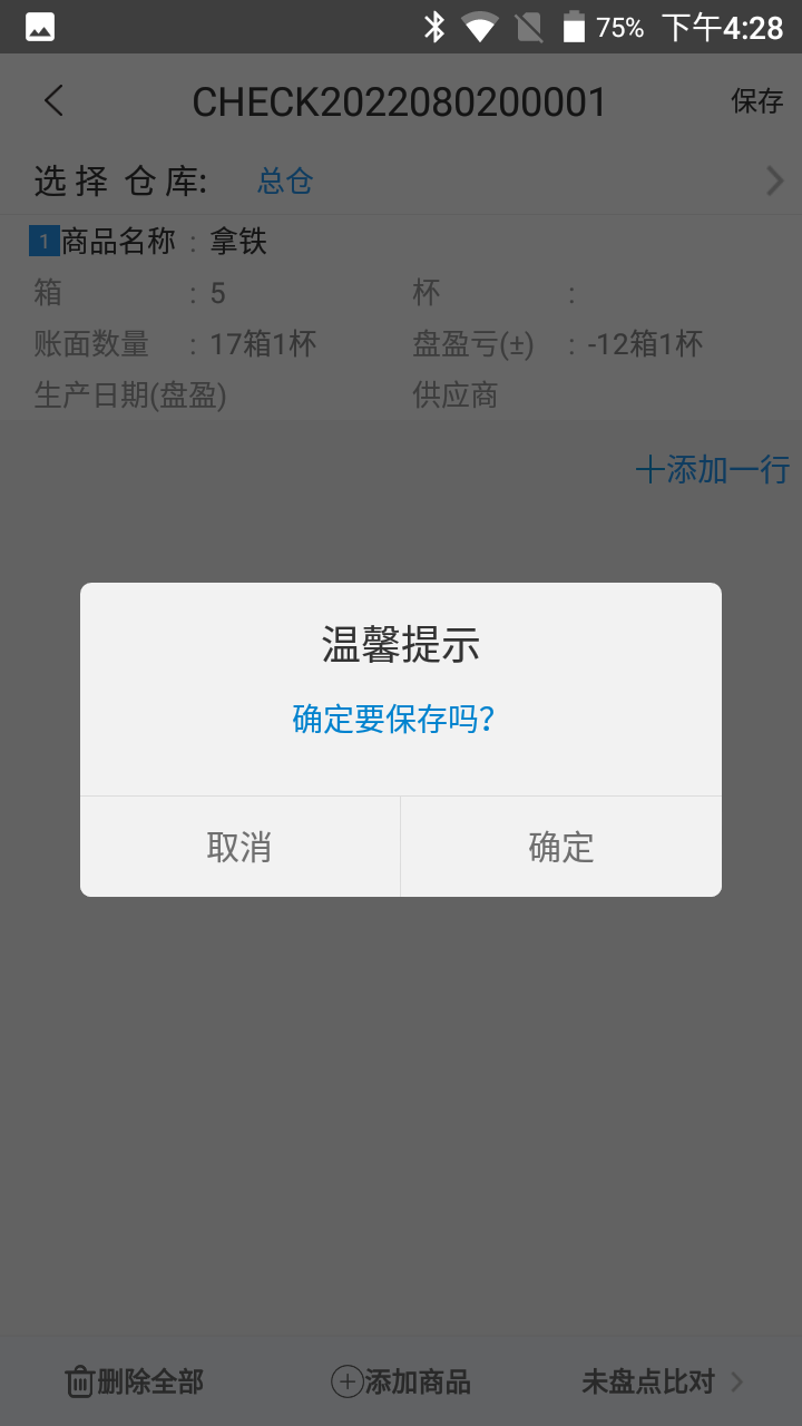 回到单人盘点页面,可查看已合并的对应单据,点击可查看详情或进行修改操作。