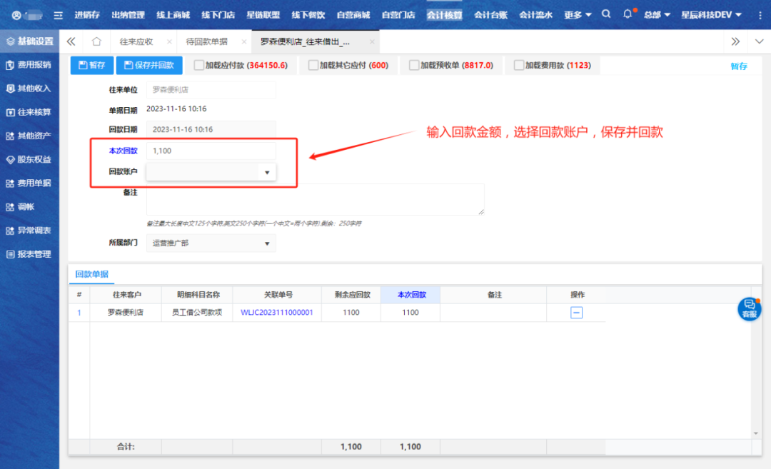 那么,借出款项之后在哪找到对应单据回款呢?在手机端又要怎样进行借出开单呢?