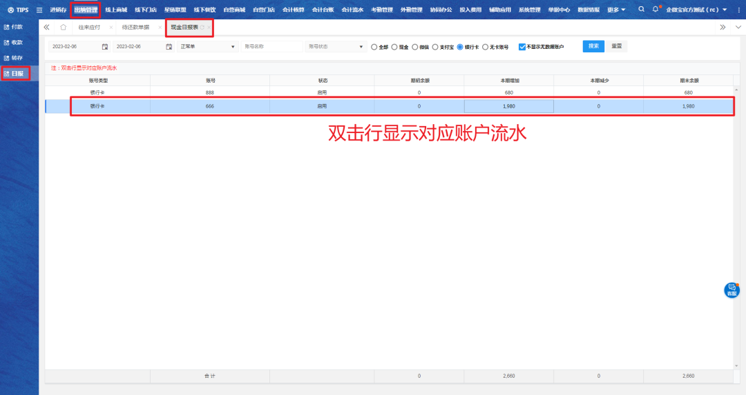 二、进入现金日报表,查看还款后对应账户资金流水。