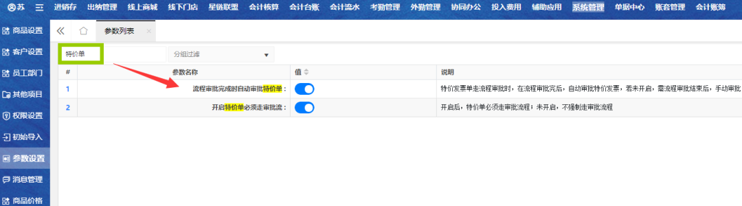 关于特价单相关的两个参数设置(图3)
