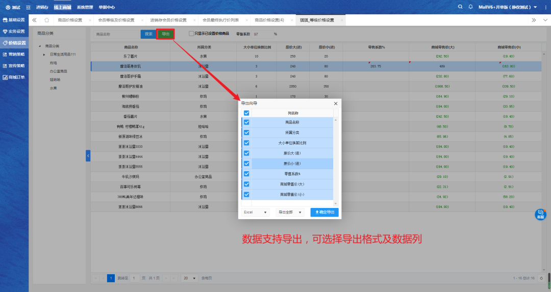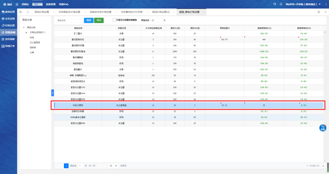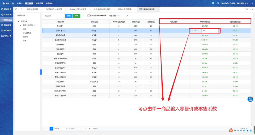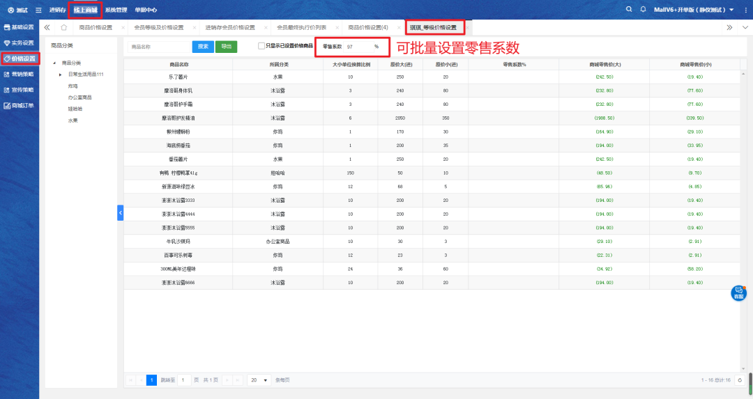 电脑端入口:【线上商城】-【价格设置】-【会员等级及价格设置】