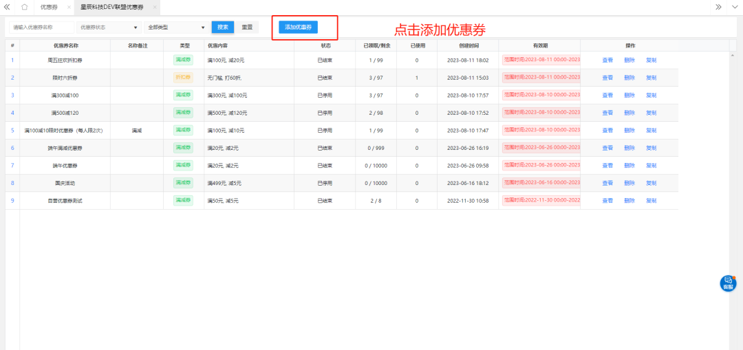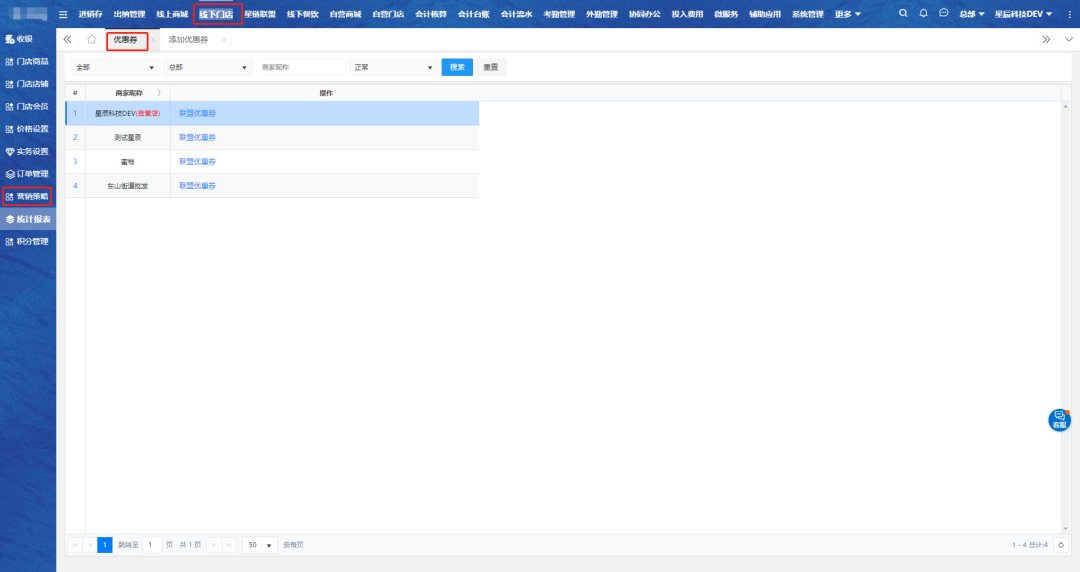 电脑端入口:【线下门店】-【营销策略】-【优惠券】
