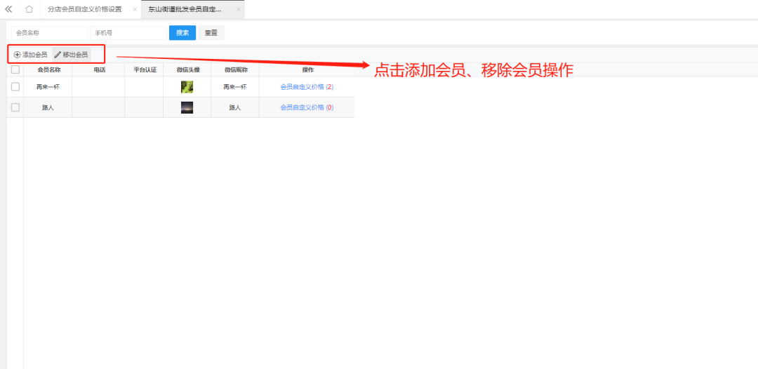 点击添加或移除会员,