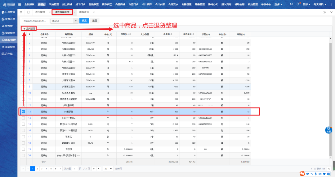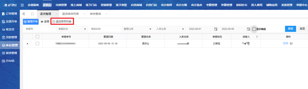 电脑端入口:【进销存】-【发票开单】-【退货整理】
