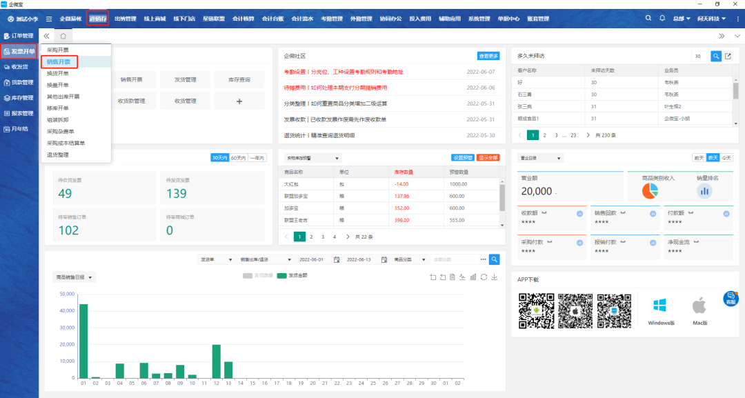 电脑端后台:【进销存】—【发票开单】—【销售开票】