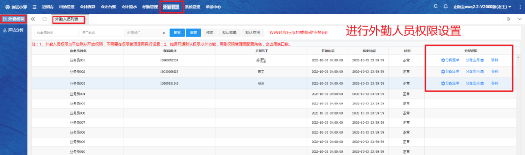 设置外勤人员权限,具体操作详见企微社区,搜索关键字查看。