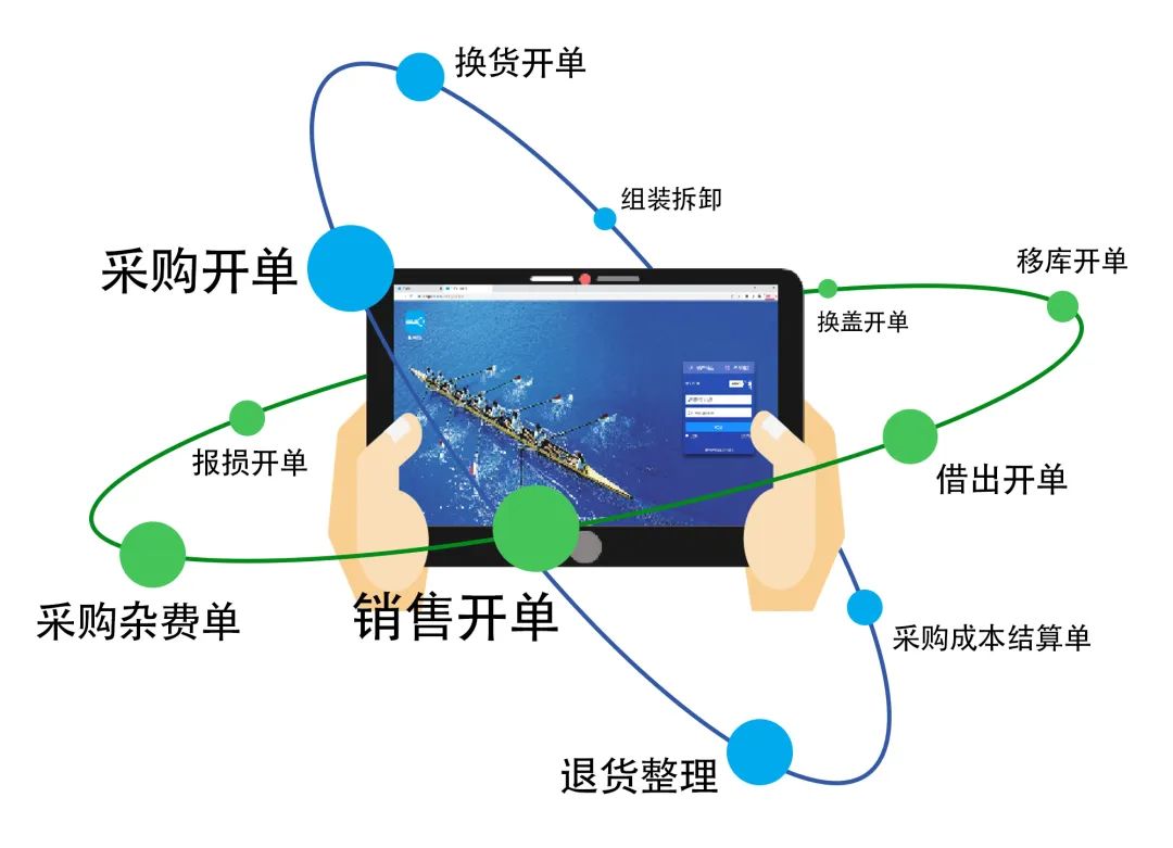 企微宝进销存系统包含多种发票开单模式——采购、销售、换货、换盖、其他出库、报损、借出、移库、组装拆卸、采购杂费、采购成本结算、退货整理等等。