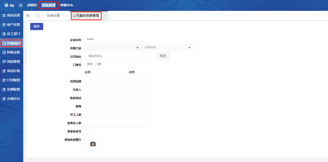 在【系统管理-其他项目-仓库设置】进行仓库信息维护,仓库贯穿于企业生产经营的整个过程,企业可以增加一些常用的仓库,设置默认仓库方便业务员快速开单,提高工作效率。具体操作详见企微社区,搜索关键字查看。