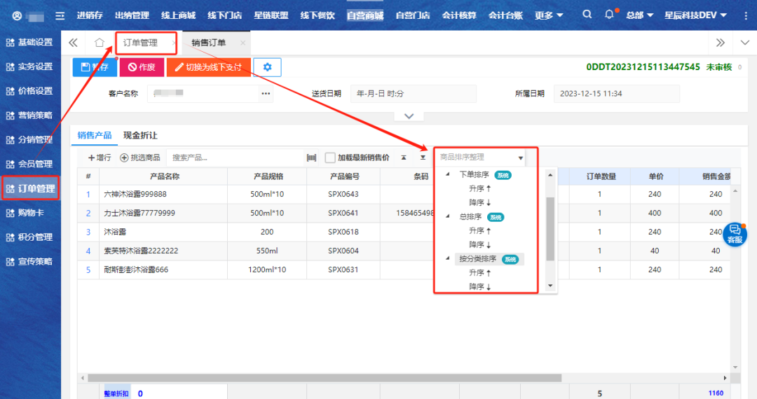 5.商城订单新增排序功能;