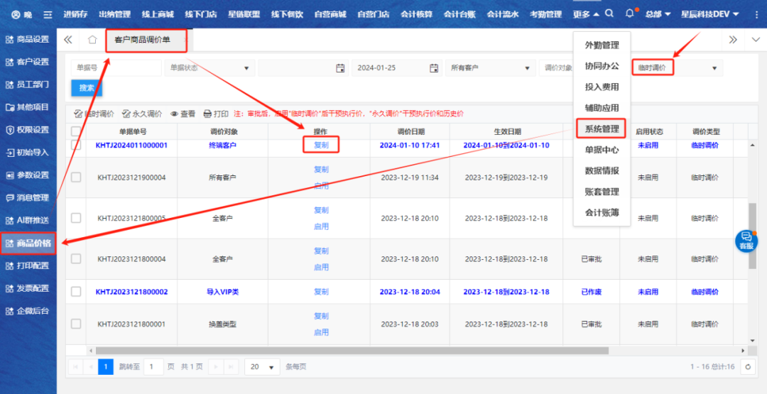 【系统管理-商品价格-客户商品调价单】,增加“复制”功能,减少重复性填写操作。