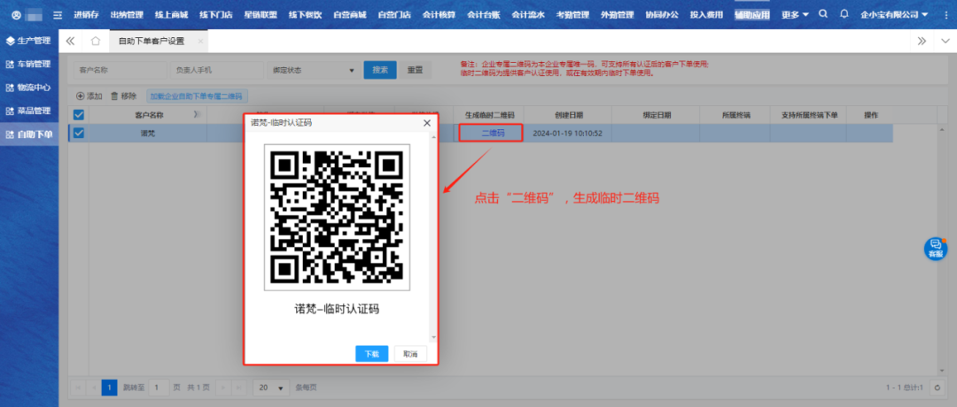 自助下单这一功能简化了下单流程,通过扫码绑定公司,实现随时随地下单。客户可以直接通过“自助下单链接”进行下单,无需花费时间与业务员联系,减少沟通成本及出错可能,下单更高效。