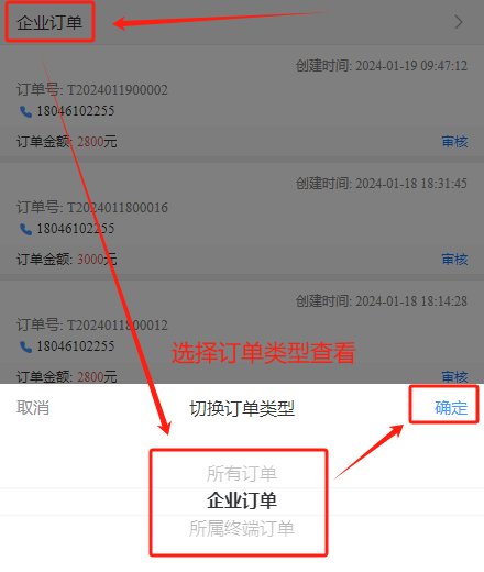 自助下单时,点击“所属终端下单”并选择,即可替所属终端下单。