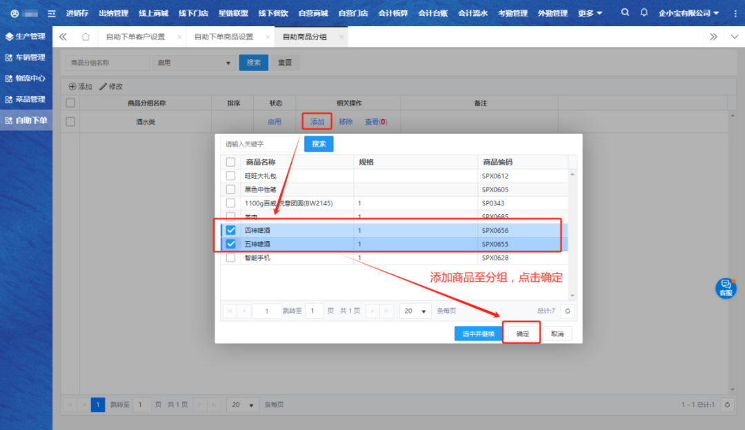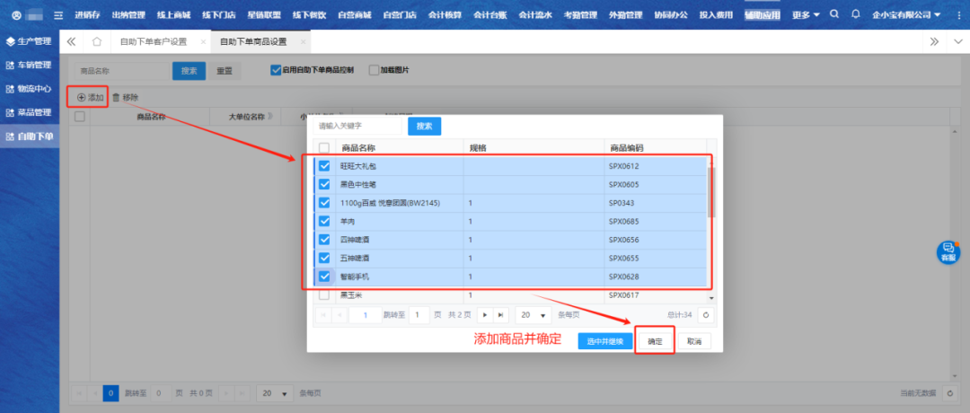 二、点击“添加”,勾选商品并点击“确定”,添加成功。