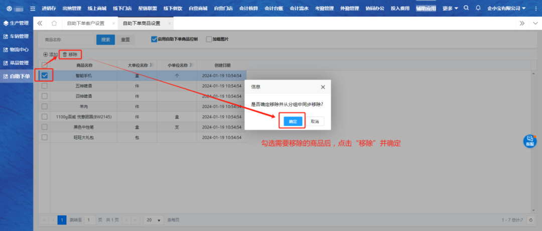 三、勾选想要移除的商品,点击“移除”并“确定”,移除成功。