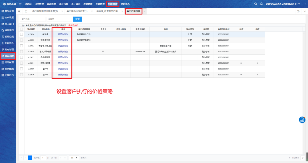 进入【系统管理-商品价格-客户价格策略】,选择调整客户的价格执行参数。