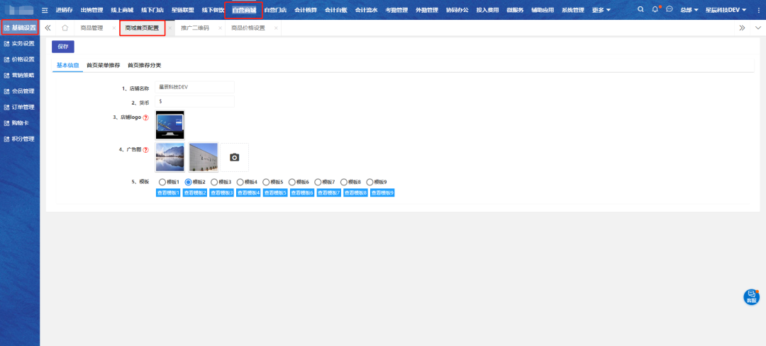 电脑端入口:【自营商城】-【基础设置】-【商城首页配置】