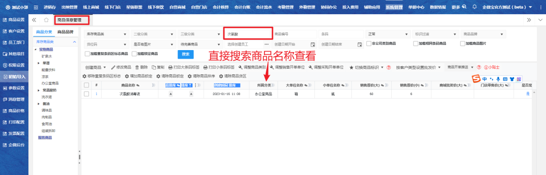 一、回到商品信息管理页面,输入商品名称快速搜索查看。