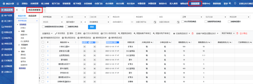 电脑端入口:【系统管理】-【商品设置】-【商品信息管理】