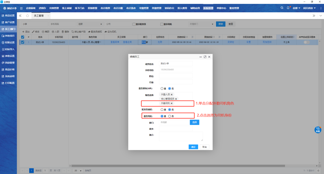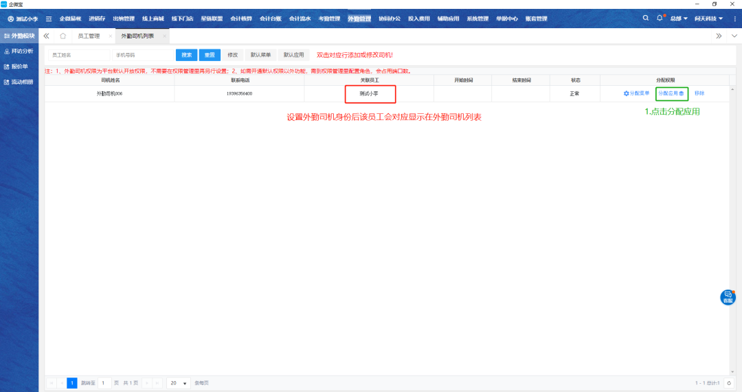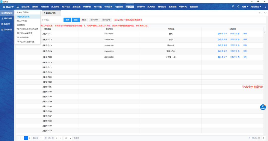二、进入【外勤管理】—【外勤模块】—【外勤司机列表】模块