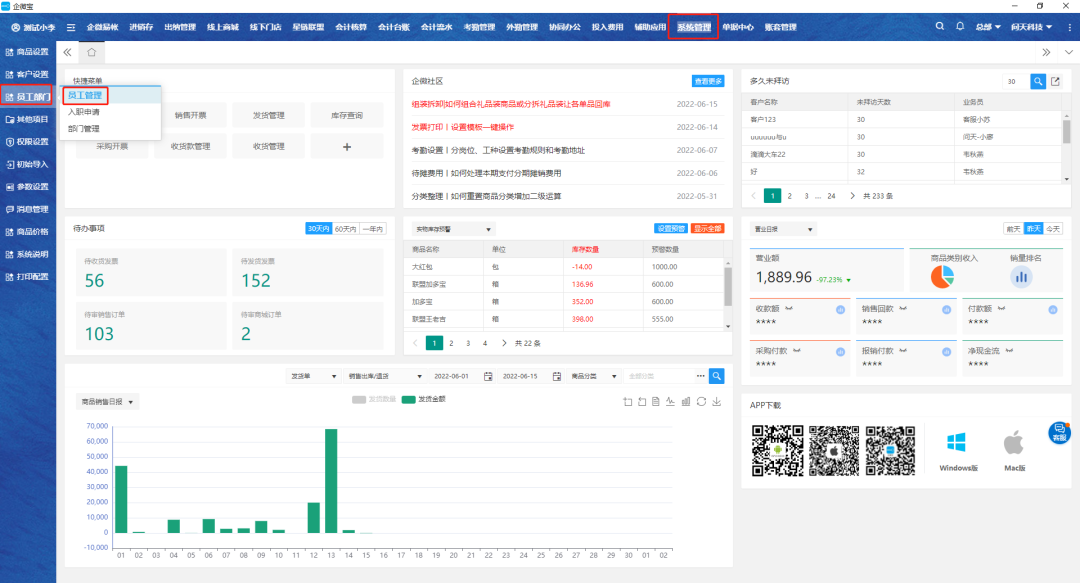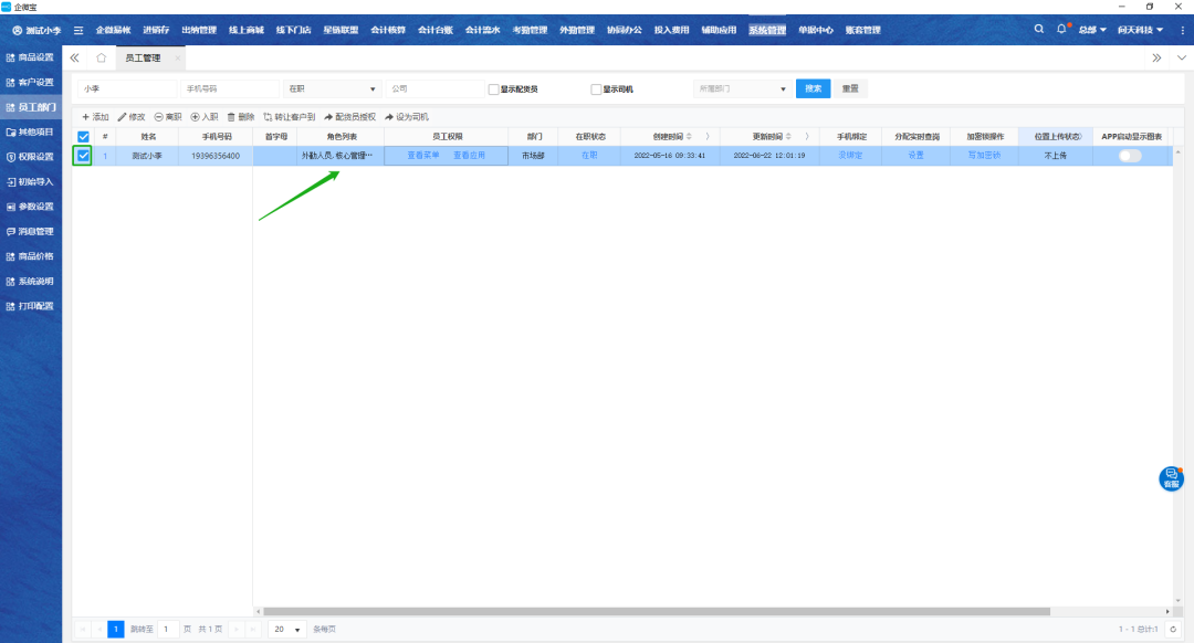 一、进入【系统管理】—【员工部门】—【员工管理】模块