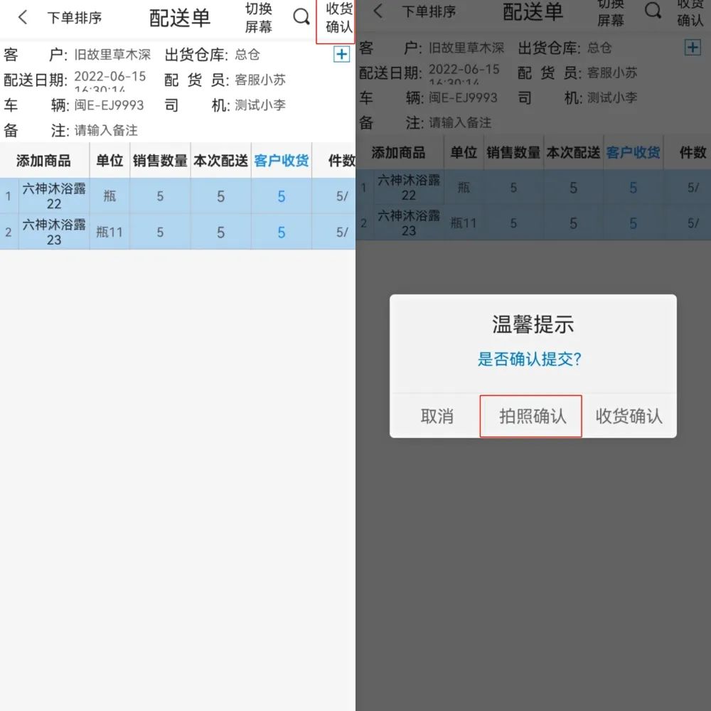 在车销与物流—配送中心找到拍照确认选项并勾选,点击保存设置于移动端