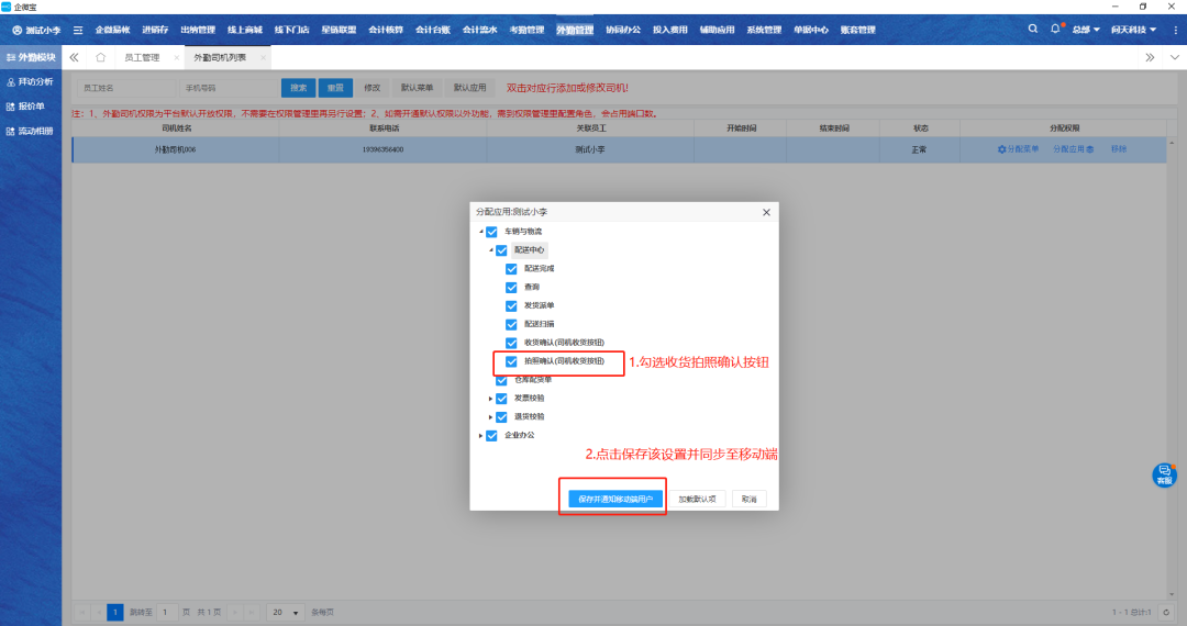 点击【分配应用】设置司机权限与客户的收货确认方式