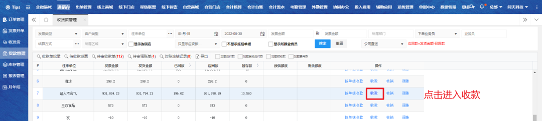 电脑端入口:【进销存】-【货款管理】-【收货款管理】