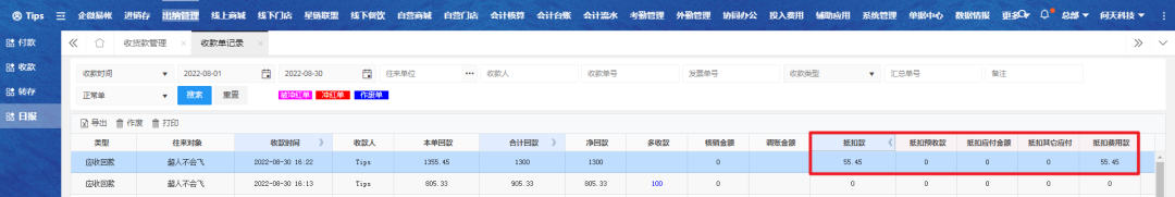 选择对应单据可查看抵扣款。