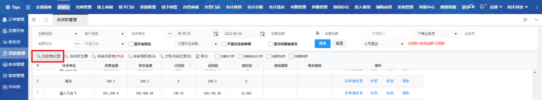 二、回到收货款管理页面,点击收款单记录进行查看;