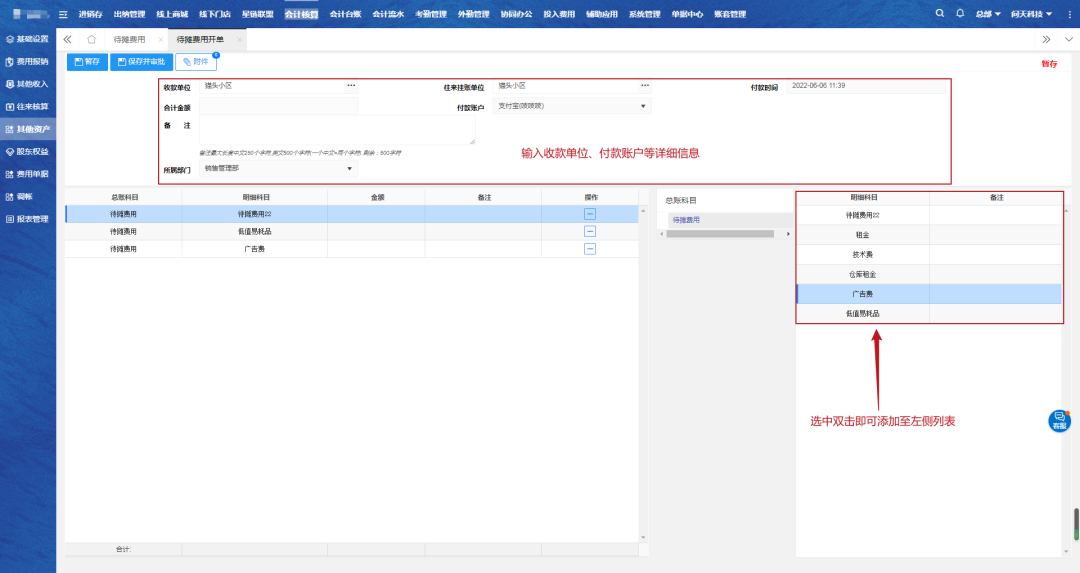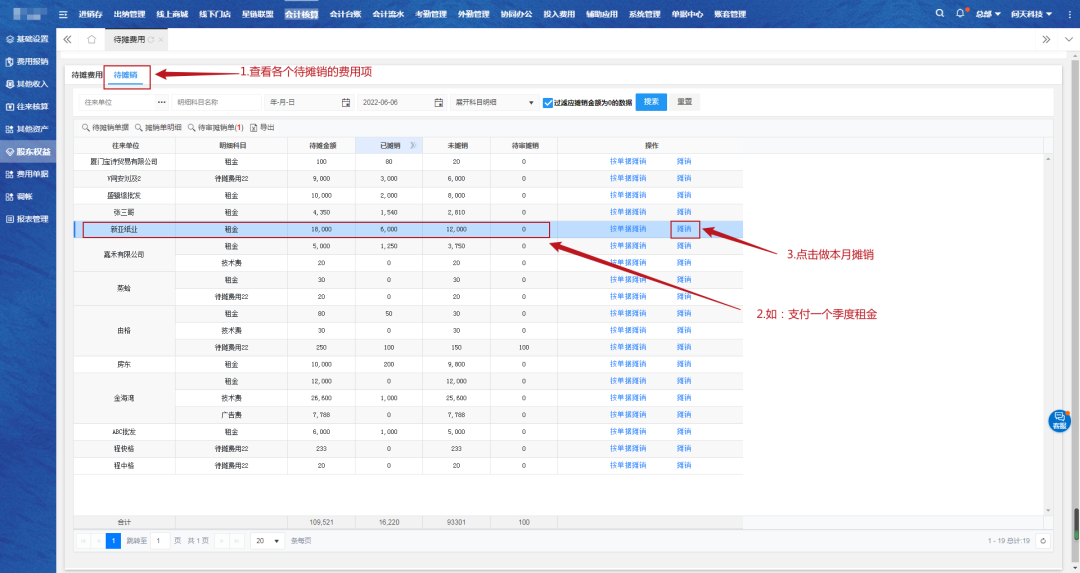 电脑端入口:【会计核算】-【其他资产】-【待摊费用】