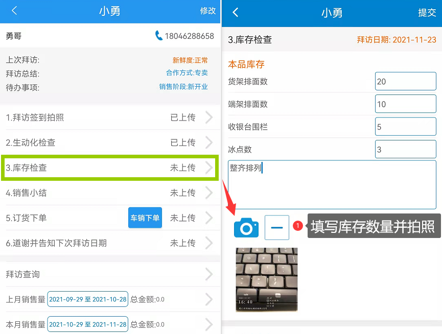 四、进行库存检查,填写库存数量并拍照。