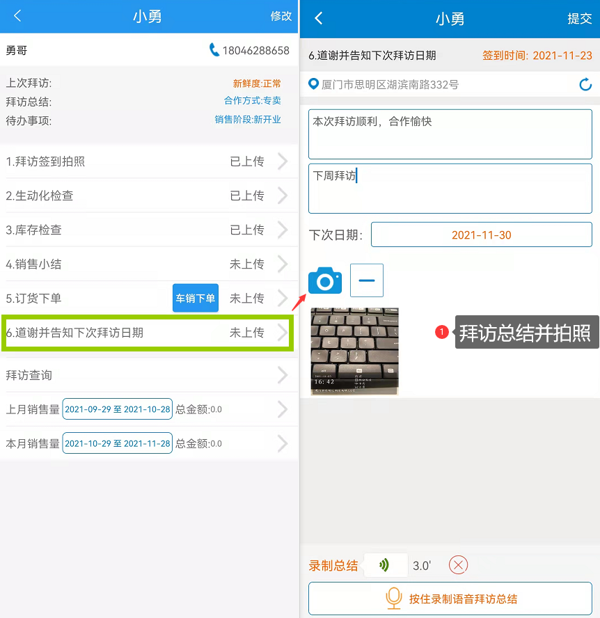 七、进行道谢并告知下次拜访日期,拜访总结并拍照。