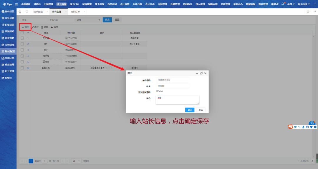 一、进入站长创建页面,点击添加站长,输入信息保存;