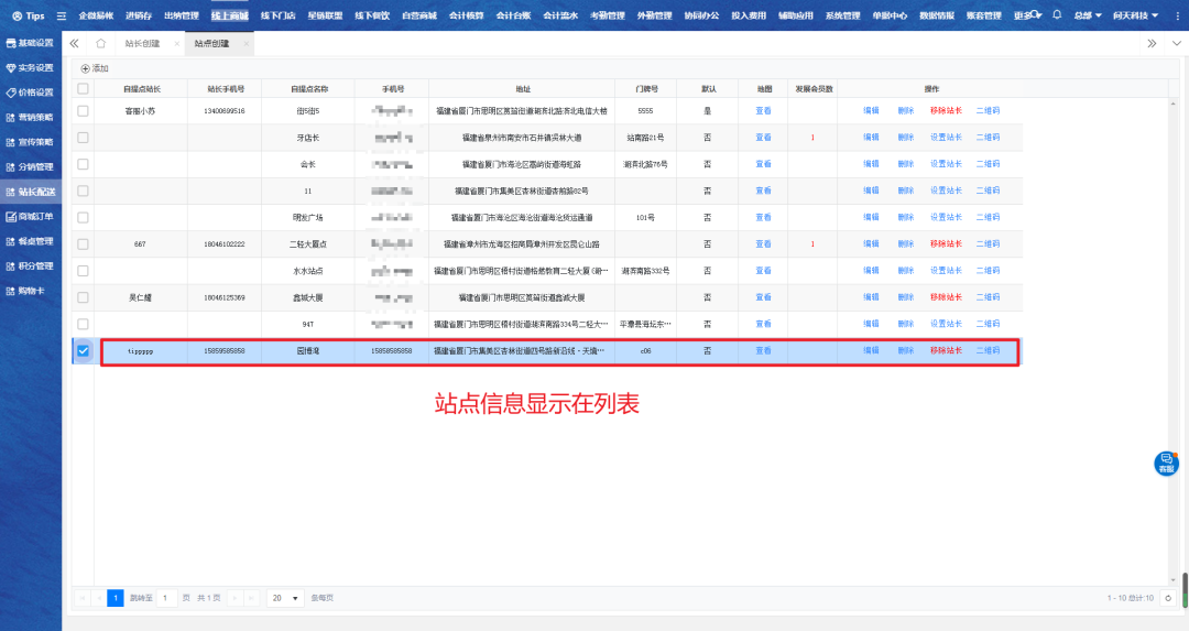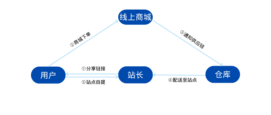 企微宝的线上商城模块,客户在商城下单选择自提点,站长就是自提地址的管理者,每个自提地址都有站点和联系人,客户通过附近站点进行自提商品。