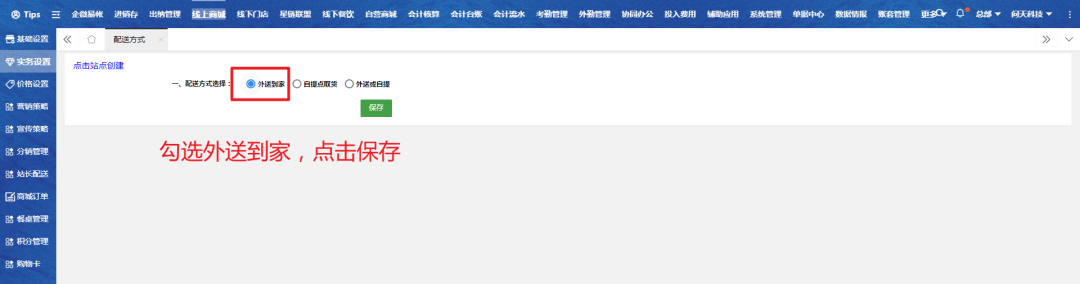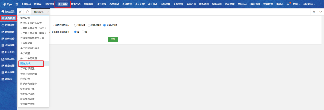 电脑端入口:【线上商城】-【实务设置】-【配送方式】