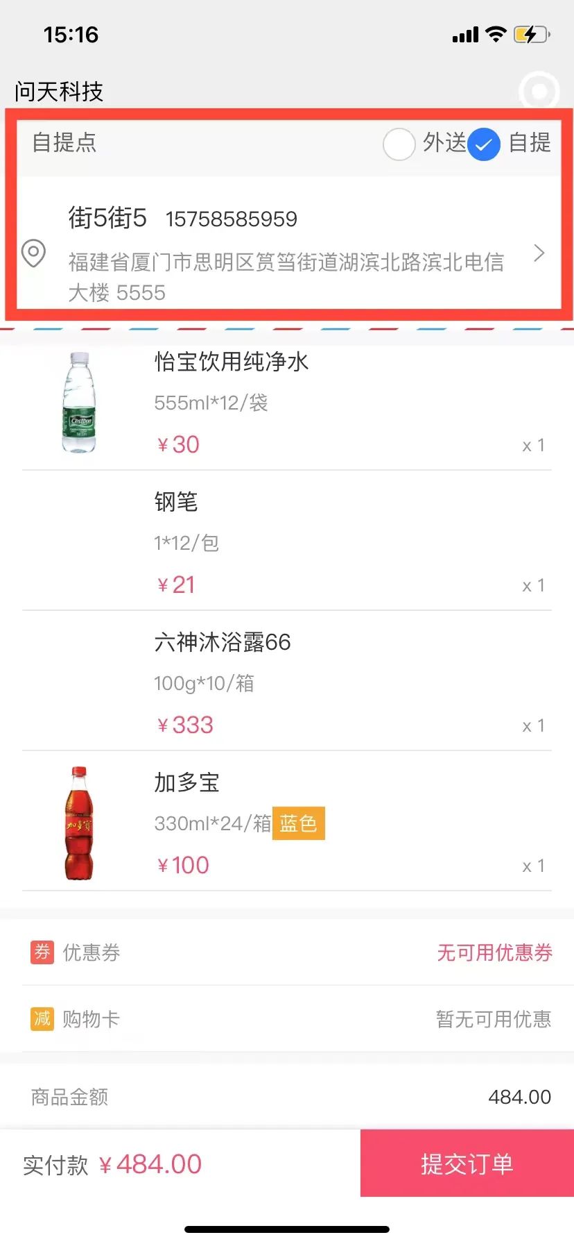 二、进入APP端线上商城首页,选择商品下单,可选择对应自提站点取货。
