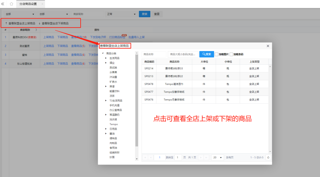 企微宝的线下门店,商家可以使用该模块进行门店商品管理及分店商品的设置,设置部分需要全店上架或下架的商品,及部分单独在分店上架的商品。